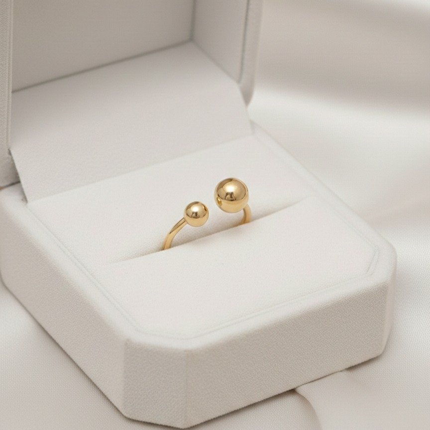 Anel Ajustável Esferas Duplas Banhado em Ouro 18k – Semijoia