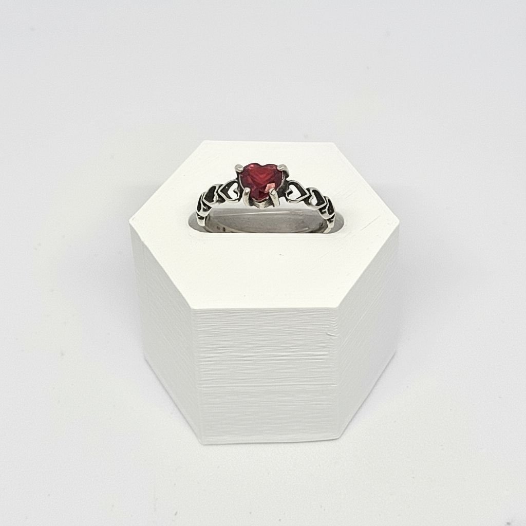 Pedra: Zircônia em formato de coração, cor Rubi/Vermelha