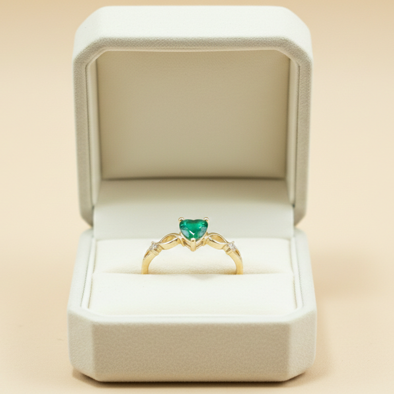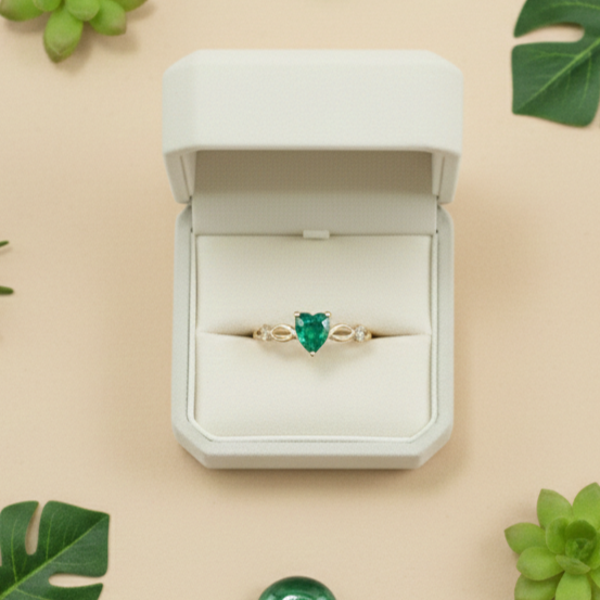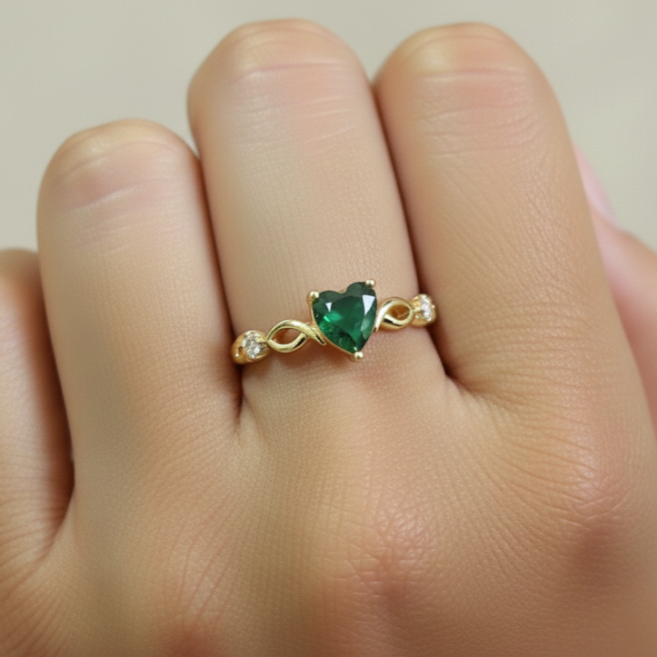 Anel Solitário Coração Verde