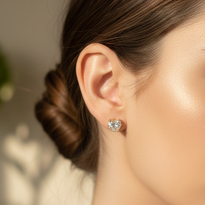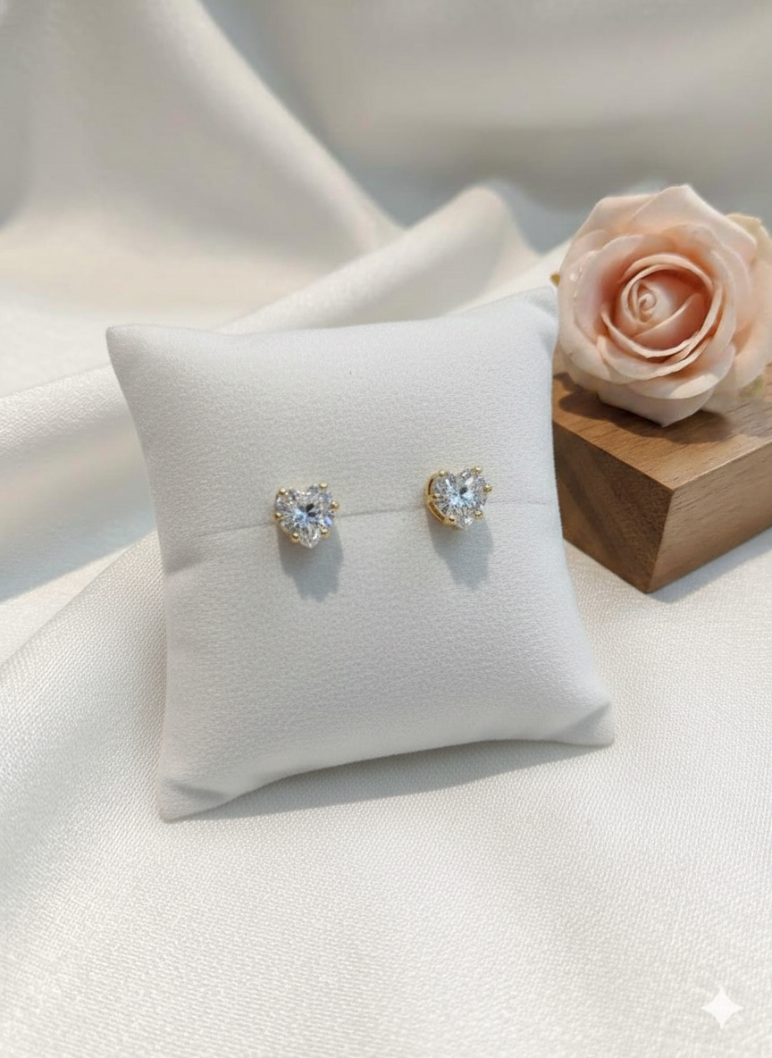 Brinco Coração Cravejado Ponto de Luz Banhado em Ouro 18k – Semijoia