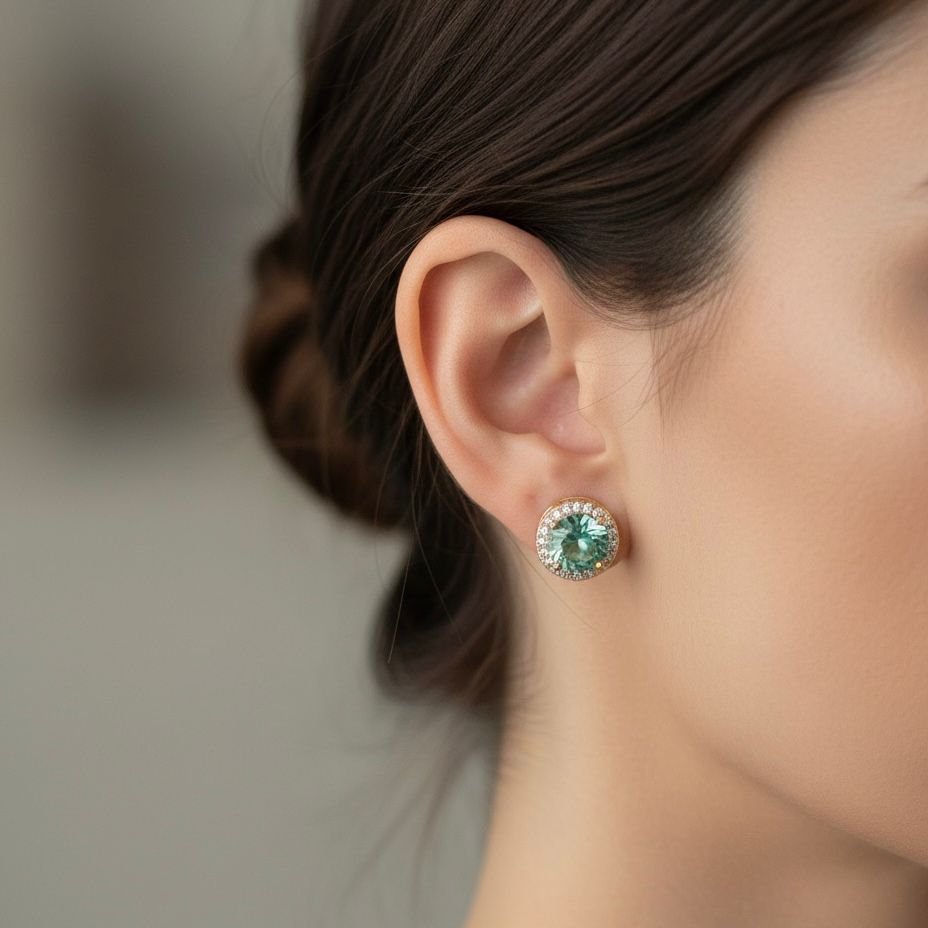 Este brinco é um verdadeira destaque, apresentando uma zircônia central em um tom vibrante de verde com lapidação brilhante. A pedra central é envolta por um delicado halo de micro zircônias, que ampliam o brilho e conferem um ar de alta joalheria à peça. Com um design clássico e atemporal, este brinco ilumina o rosto com elegância e é a escolha perfeita para quem busca um acessório que une cor intensa e brilho luxuoso.