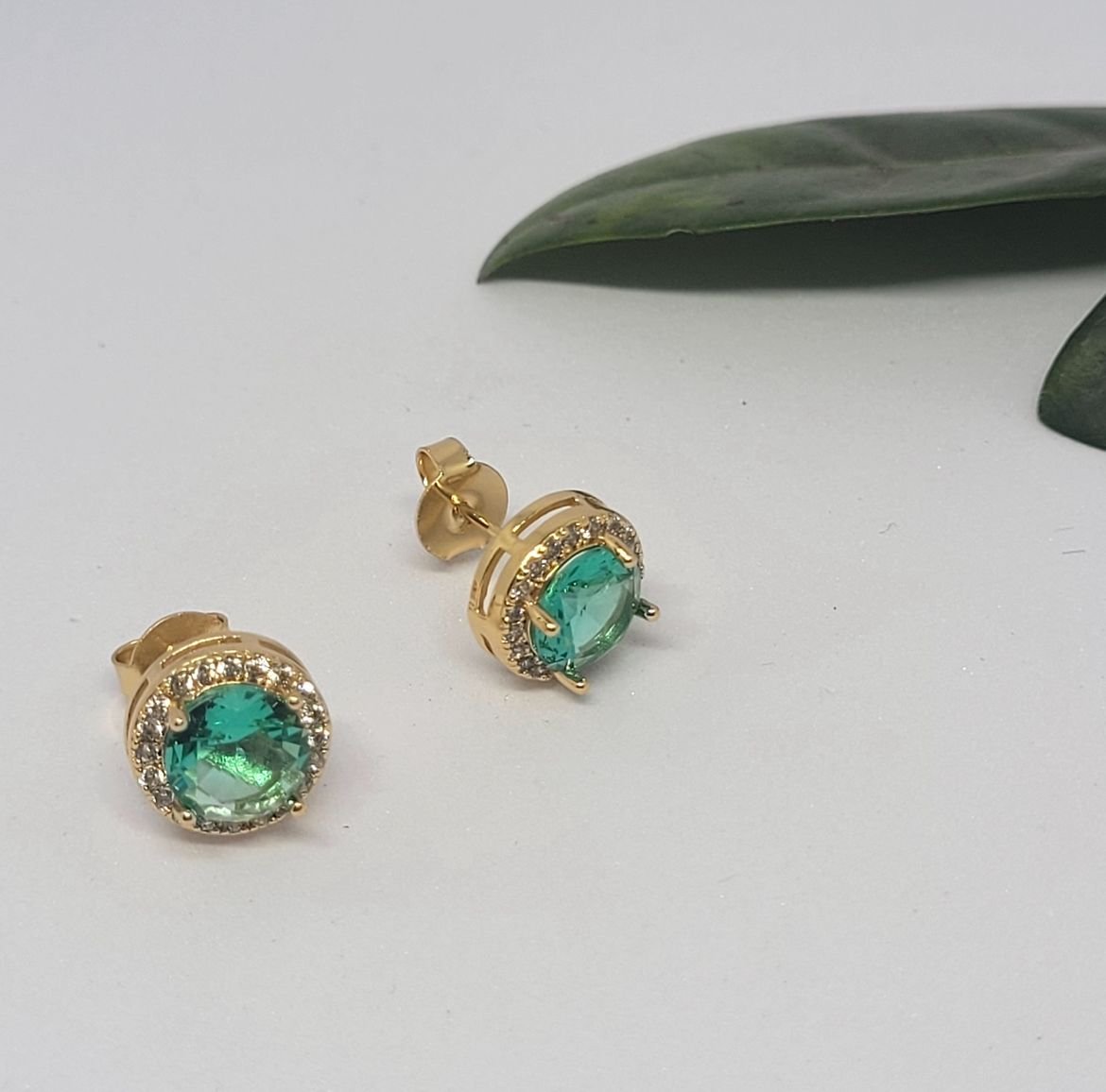 Brinco De Zircônia Verde Banhado em Ouro 18k – Semijoia