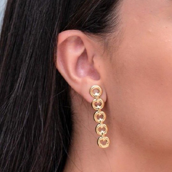Brinco Longo de Elos Banhado em Ouro 18k – Semijoia