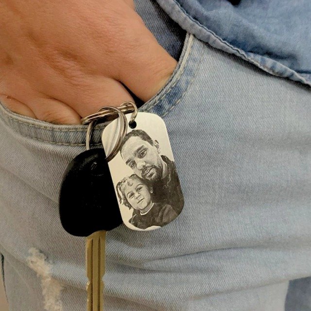 Chaveiro Placa Personalizado em Aço Inoxidável com Foto – Personalize frente e verso