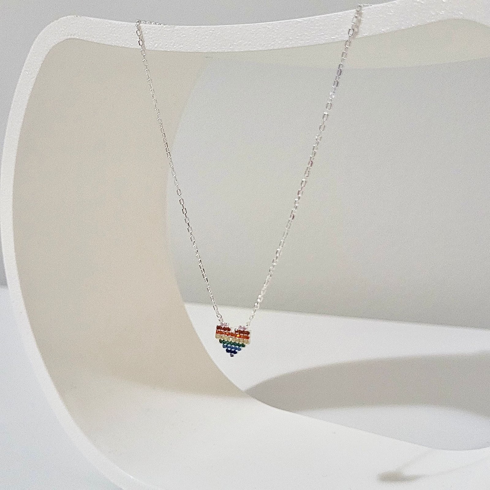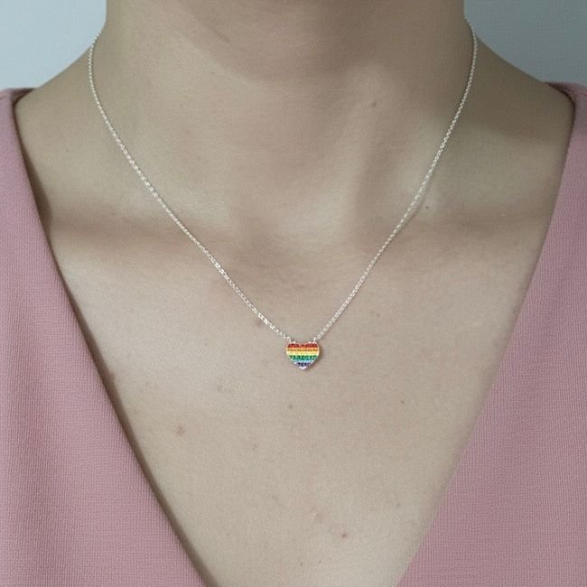 Colar de corrente de elos finos em Prata 925, com um pingente em formato de coração cravejado com zircônias coloridas em arco-íris. As pedras em cores vibrantes conferem um toque alegre e moderno à peça clássica do coração. Uma joia perfeita para quem adora cor e sofisticação discreta.