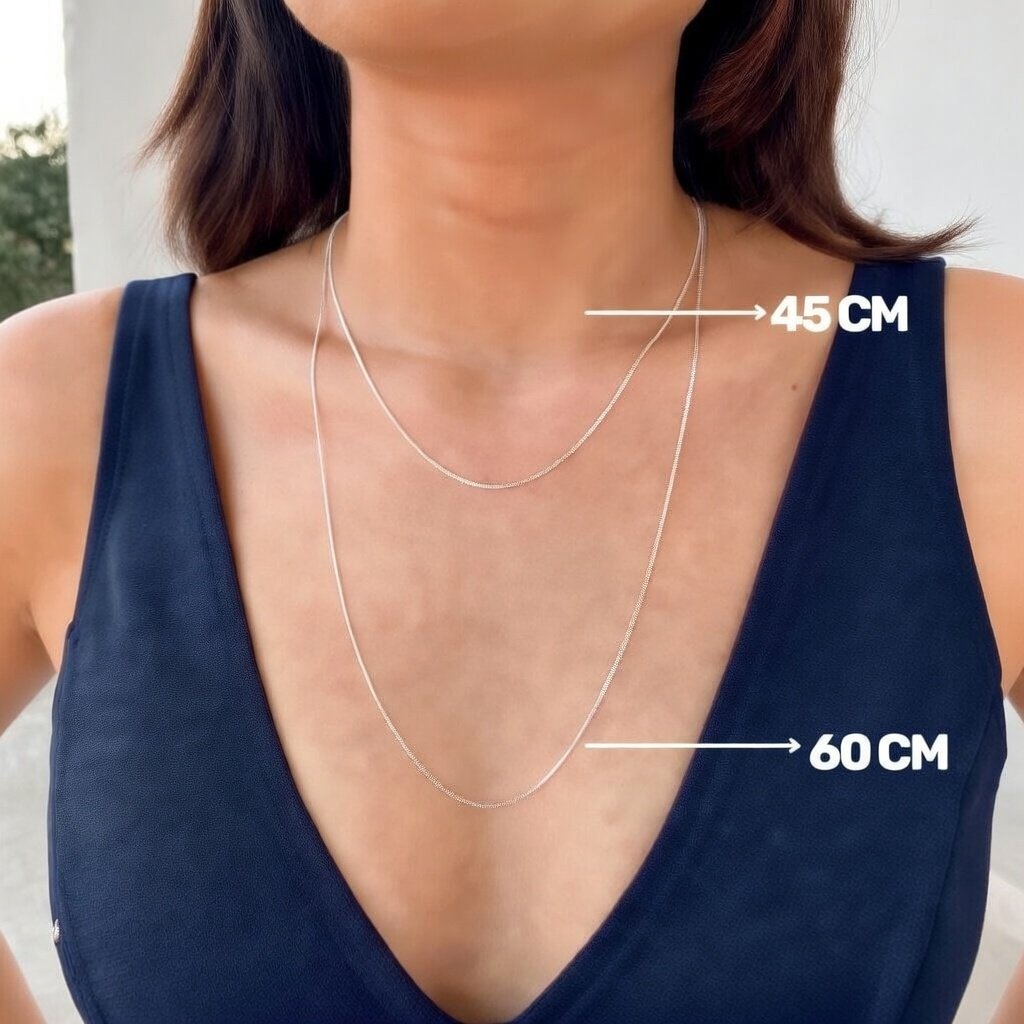 - Corrente: Tamanho à sua escolha (45 cm + 5 cm extensor ou 60 cm)