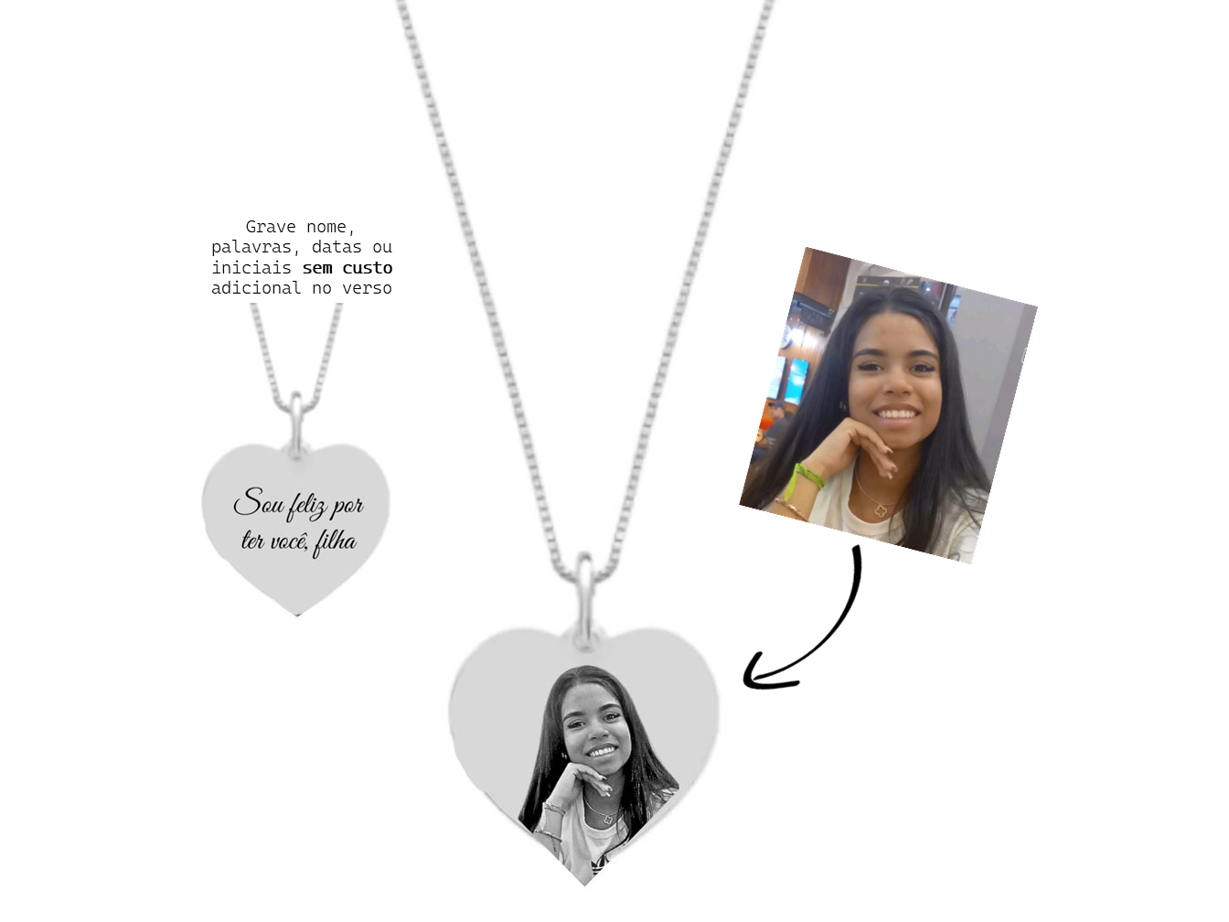 Colar Coração Personalizado com Foto, Nome ou Frase